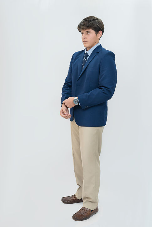 Opcional: Suéter rojo con logo frontal blanco bordado.