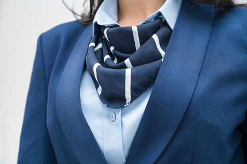 Falda pantalón color azul marino media noche y líneas paralelas en color rojo y blanco, con logo delantero bordado.